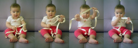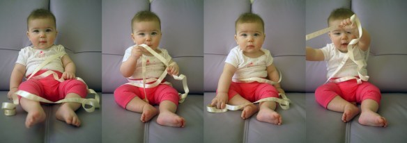 I had my six months doctor’s appointment yesterday. It was a routine check up where the doctor weighed and measured me as usual. I tipped the scale at almost 16lb (15lb 14oz to be exact) and measured 26 3/4in. So today, I decided to see if I grew some more over night (it’s a known fact that babies grow faster when they sleep). But measuring oneself is not as easy as it looks.